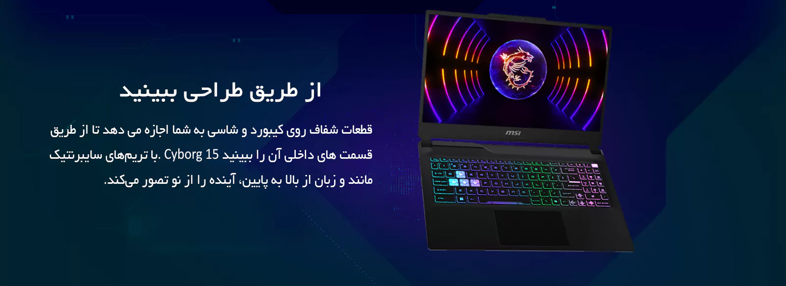 لپ تاپ 15.6 اینچی ام اس آی مدل Cyborg 15 A13UDX-i7 13620H-16GB DDR5-1TB SSD-RTX3050-FHD